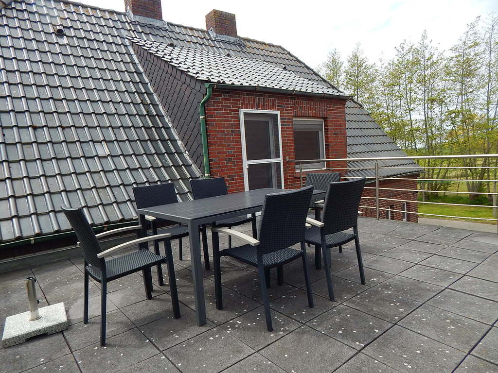 Attraktiv an dieser Wohnung ist diegroße Dachterrasse, die zum relaxen einlädt und von der aus man fast den gesamten Garten erleben kann und Sie Fasanen, Hasen und Vögel beobachten können. Der Garten darf ebenfallsvon Ihnen genutzt werden.