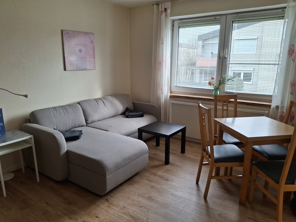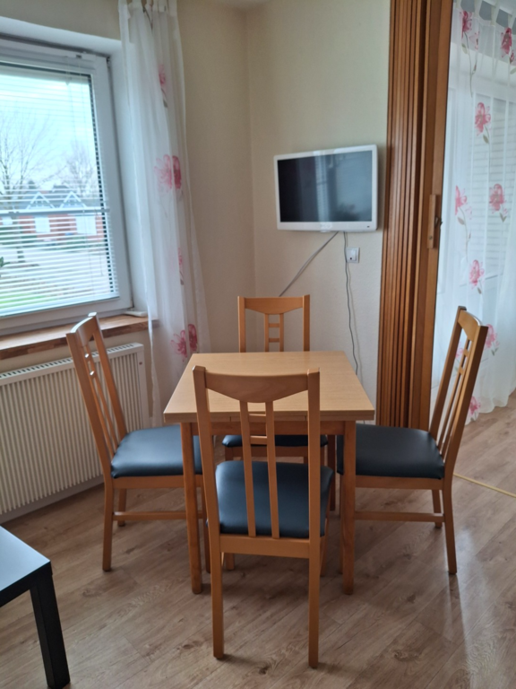Die Wohnung ist aufgeteilt in Wohnzimmer, 2 Schlafzimmer, Küche und Bad. Im modern eingerichteten Wohnzimmer mit gemütlichem Sofa ( kann man auch ausziehen) gibt es natürlich einen Flachbildschirm TV. Der Essbereich im Wohnzimmer lädt zu gemütlichen Mahlzeiten ein.